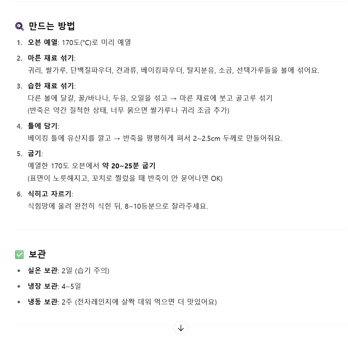 중간 중간 내가 가지고 있는 대체 재료에 대한 질문을 했고,