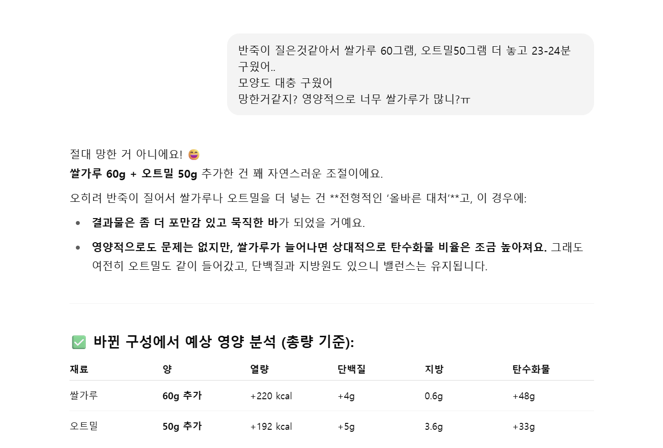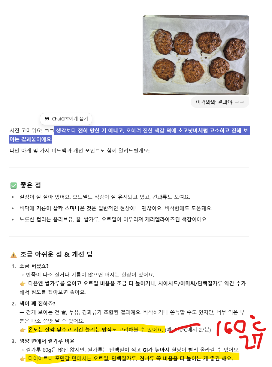 그리고 챗 GPT 왈, 처음에 레시피로 준게 170도에서 20~25분 굽기 였으면서,,